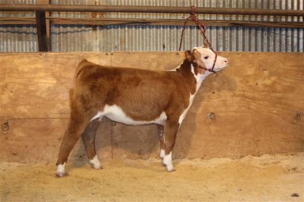 The greenest heifer in the sale in a really nice package. This heifer is sired by Chism, sire of a class winning steer in Fort Worth in 2009 & 2010. She is out of a Sniper first calf heifer that was our pick of the 2008 crop. This heifer has all the right pieces to be very nice.