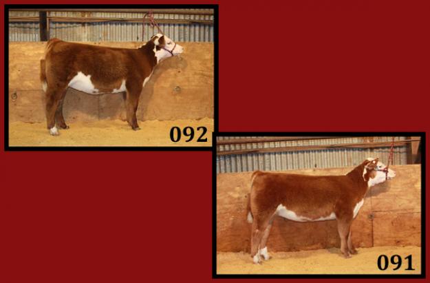 Choice Lots 091 & 092 – You looking for a steer maker? If so, look no further than the choice lot. These Outer Limit daughters out of our Nike donor cow are nice females. They are really stout made and have a ton of rib. These heifers will be moderate and are sound on their feet and legs.
