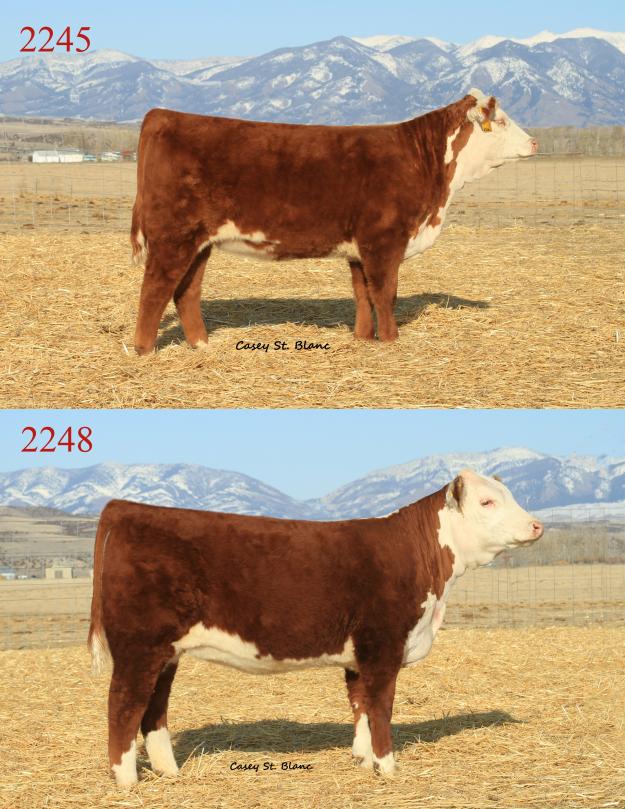 Polled Selling choice of 2245 or 2248. Ideal female that is wide based, huge ribbed, with tons of quality and look. Show the breeding power and balance of Perfect Timing! Dam and grandmother are power cows of the first order. Will be a tough competitor and ideal cow! Owned with Iron Lake.