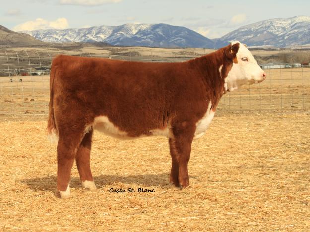 Horned A very classy 955 daughter out of an ideal Harland bred cow. There are very few 955 daughters for sale and this will be a great one! She is very balanced with a big hip, plenty of rib, and lots of pigment. She has a lot of look to show and will be an ideal cow. Her EPD graph is very strong for growth, maternal, and marbling!