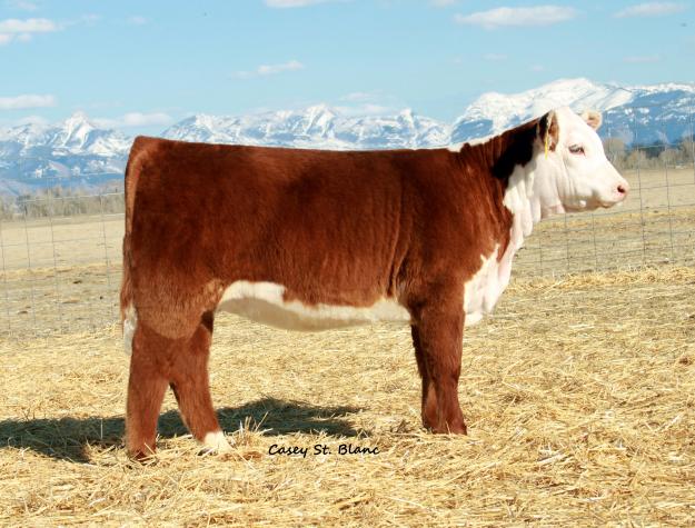 Horned A sweetheart of a heifer; ideal markings and pigment, with a big top, thickness from behind, lots of rib! Her EPD graph is very impressive and she is as good as her graph! This will be one of the first Sensation heifers offered for sale and this is a great one! Her dam is our 6124S donor cow with a great udder and many super progeny!