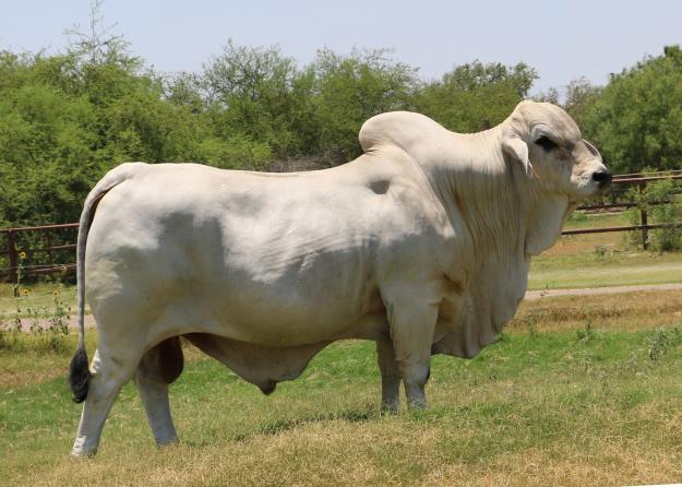 He has produced several herd bulls working successfully in several leading Brahman herds. We are using several of his sons also. Ambassador collected ET quality semen at 17 months of age which is a trait that the Brahman breed needs to improve on. His daughters have excellent udders and are very docile cattle. He works well with many kinds of cows. We are very fortunate to own this great bull that will be one of the leading bulls when the history book is written on POLLED Brahman cattle.