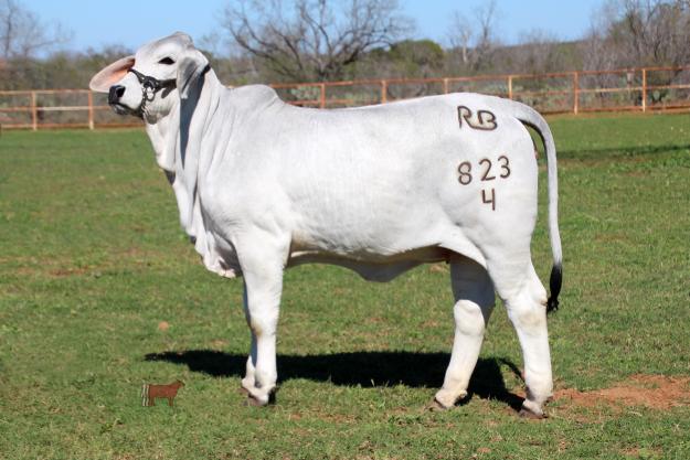 “Lollipop” is the youngest heifer in the sale, she shows a tremendous future with style, length of body and a great pedigree. She’s out of El Rey, a bull that has done a tremendous job for us, owned by our good Friends Alfredo and Josefina Muskus. 823’s Dam, SNS 172 is a royally bred donor cow that we purchased from Satterfield Ranch. “Lollipop” with her extended neck, almost no navel underline with great depth of ribs and excellent disposition is destined to produce top quality Brahmans. We are selling 100% and reserving the right to one conventional flush or two IVF sessions following her show career.