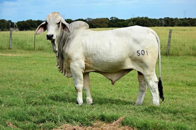 501’s performance EPD’s are great, along with a really good milk EPD. His actual birth weight of 73 lbs. is very acceptable, but his 3.4 BW EPD is above breed average. He probably needs to be used on Brahman females. 501 is really gentle and will make a nice addition to your breeding program.