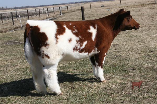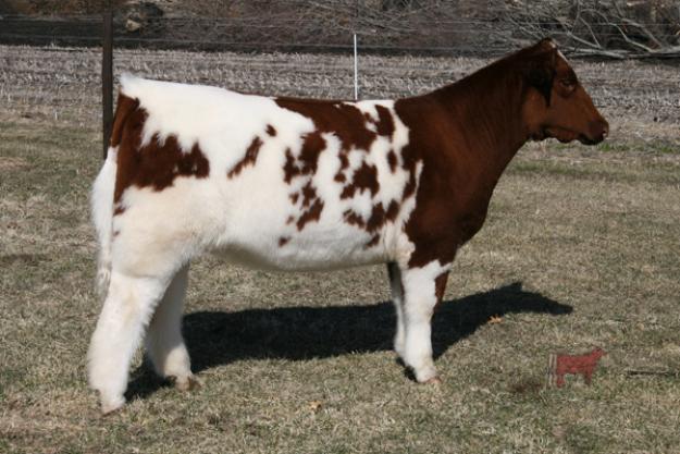 WOW! That’s how this one has hit me since the first time I saw her as a calf. With the seeming shortage of high quality PUREBRED Shorthorn steers every year, and the extreme popularity of colored show cattle, this is a female we sought out to be a donor and fill this void. Extreme in her pedigree, yet refined and angular as a female should be through her front third, with tremendous skeletal width and muscle volume, while being soft footed and clean jointed (all that never goes in the same sentence).I should have pictured her before her haircut as she is easily one of the wooliest creatures I've ever been around, and has that shag that would scare a Llama!!! A big league show prospect with plenty of pedigree and unique quality to out-produce herself. Retaining 1 flush at our expense. Buyer has option to buy out our flush rights at 25% of hammer price.