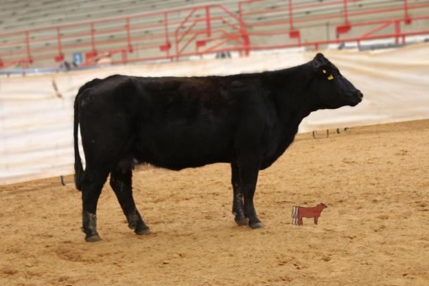 Solid Black cow purchased at the Gold Bullion sale in Kansas as a young heifer with an empecable pedigree. Brooks Above Par as the Sire and the infamous KSU Miss Too Black 103N, Top Donor, that has been the foundation of many of the Gold Bullion Group sales, along with her Dam the Miss Kansas K 11G cow, WOW! Safe in calf to our solid black, HSF Big Sky 59S 90W herdsire, purchased for the Hoffmans in Kansas. He is the full brother to the Wilkinsons Ranch top Donor, HSF Miss Sky 87U in North Dakota. For more information call 903-450-6236. Consigned by Bois D' Arc Land & Cattle.