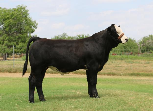 Bullock is long bodied, has lots of eye appeal and is very correct in his structure. You study him from any angle and he has plenty of muscling and tracks out on a good set of feet and legs. His black, blaze faced color pattern coupled with his clean sheath and strong pedigree make him a solid herd bull prospect. His paternal grandsire 6G/LMC Rajin Cajun and maternal grandsire LMC EF JW Black have done an outstanding job of improving our cattle, as well as being semen sales generators.