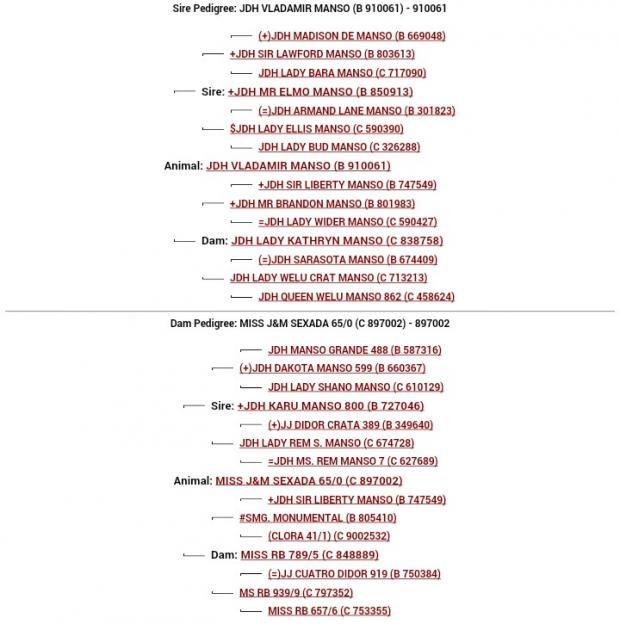 WOW! The pedigree in the resulting progeny will be second to none. 65/0 is an own daughter of the immortal +JDH Karu Manso 800, and out of the great donor Miss RB 789/5. Combine that with the genetics of an Elmo son who goes back to one of the strongest cow families for JD Hudgins, Locke Division, and what you get is a pedigree that includes Karu, Madison, Sarasota, Elmo, Lawford, Brandon, Liberty, and Didor 919.