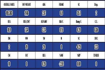 Kara Boy 32/7 brings a lot to the table. He is a well built, stout, rugged and an extremely correct bull. His sire, JDH Mr. Manso 663, has had offspring in every ABBA bull test and 100% of his bulls have not only made the sale, but have excelled in both muscling and marbling. You will have the assurance the genetics are there, with (=)JDH Winchester Manso,(+) Mr V8 202/3 (+)JDH Remington Manso, (+)Charley’s Jazz. (+)JDH Madison de Manso, (+)Atari Manso, (+)EJLGigante 309,(+)Atlas Manso 328/3, and +JDH Lady Manso 286/7, the 2004 Reserve International Champion in his pedigree.He is a bull can not only inject muscle, length and eye appeal in your herd, but he can also bring in the carcass traits and feed efficiency that we all are striving to improve.The icing on the cake, in case you missed it, is his BW EPD—-an impressive 0.6. Kara Boy’s confirmation, pedigree, and low BW EPD’s make him an exceptional addition to any herd.