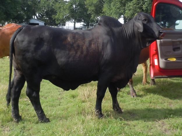 VL ROJO APACHE 1/50, promising, mostly black young herd sire of Santa Ranch producing outstanding offspring, Apache 1/50’s sire is KC Apache 707/4, a large Black Bull whose weight was approximately 2800 lbs. and who has produced a number of dark pigmented red show winners in South America and outstanding offspring in the US