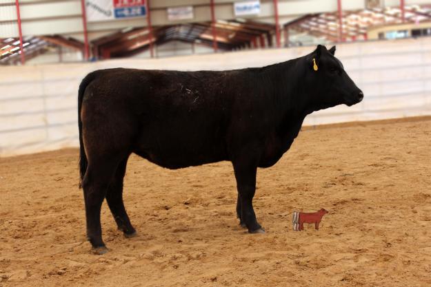 This heifer has Qualilty. Her sire was the Top selling bull in the 2009 National Sale. She is bred to Musel Man Y30. For more information call 940-368-4352. Consigned by Hampton Simmentals.
