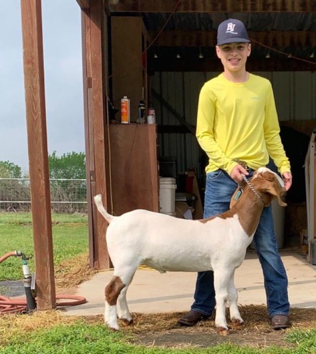 Grade 6 - GOATS - My name is William Scarpinato and currently I am in the 6th Grade at Franklin Middle School. I was involved in Franklin Little Dribblers and currently play select baseball for the Brazos Valley Scrappers. I am a member of Elliot 4H and participate in Junior FFA for Franklin. Since raising my goat Mr. Nesbit, I have incurred expenses of goat purchase, feed, vet and worming expenses, as well as time. Due to unprecedented occurrences and not being able to show Mr. Nesbit, I greatly appreciate Robertson County Fair Association COVID 19 Recovery Sale.