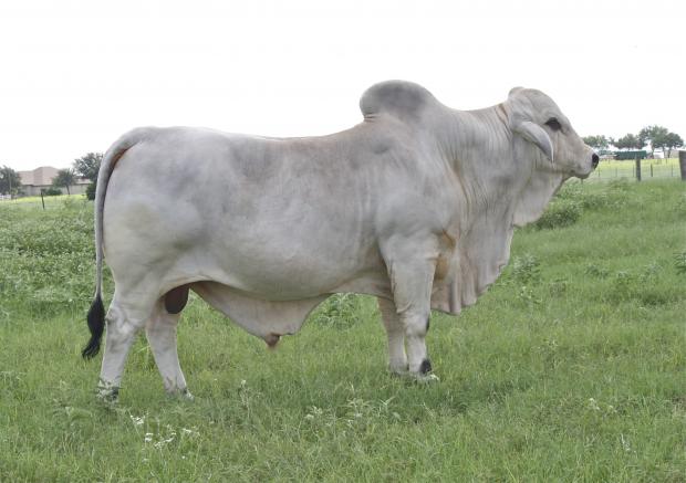 This is a really neat looking POLLED Brahman herd bull or show steer prospect born 11/5/2013 and sired by the soon to be Register of Renown LMC LF Ambassador who is a classic JDH X V8 cross. He has produced lots of really good POLLED Brahman cattle for LMC and those who have used him in AI. He consistently produces progeny rich in eye appeal, muscle and correctness with plenty of bone, performance and power. He has produced lots of herd bulls and several champion females including the popular LMC Polled Spice and LMC Polled Paulette.