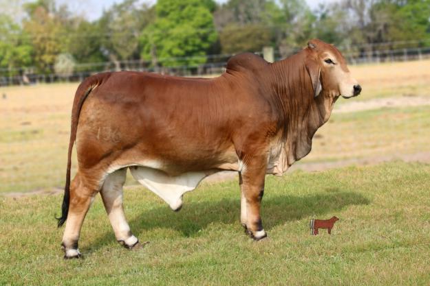 The only RED being offered in our entire sale. Your first question is why are we selling a bull we purchased for a herdsire? Well, the answer is simple. We have a small red herd, with only 4 red cows. We cannot justify maintaining a herd bull for so few red cows. He is too good of a bull to go to waste. Every time we have shown this bull, he has won his class and/or division. He is very gentle and sticks like a dream, literally anyone could show him. He is sired by the “Hes Got the Look” 40/2 bull, the 1993 National Champion bull who has had more impact on the Red Brahman breed than any other bull. 136 is out of the National Champion Miss Chapparral 102 cow, a Winchester daughter who is doing a great job for them. This bull is huge topped, level in his design, stands on a great set of feet and legs. This bull would make a great impact on anyone’s herd. We are selling 100% possession. L2 Ranch would like to reserve the right to 50 units of semen at our expense for in herd use only.
