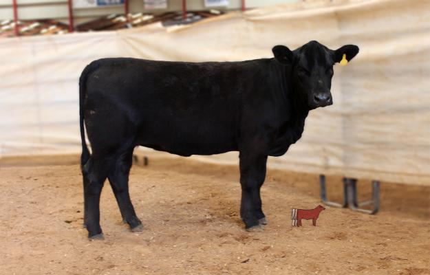 This is a heifer with lots of style. She come from a Champion bloodline, Ladies Man and Powerstroke. She is bred to Musel Man Y30. For more information call 940-368-4352. Consigned by Hampton Simmentals.