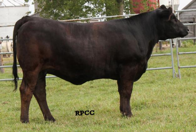 Nice black pedigree throughout! Goes back to our never fail Raven cow family. Small teated, tight udders. Really nice, well made, big muscled female. Bred June 30th to our calving ease, high vigor specialist, SVJ Ante Up!
