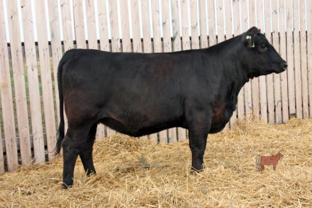 Exposed May 8 to Sheidaghan War Bonnet 89Y. Preg checked Sept. 13, confirmed 4+ months. BW: 103 lbs. Sept. 13 Wt: 1260 lbs. Another powerful Milkman female out of the JSF 37S. We are really impressed with how these Milkman females have developed. Her dam 91R is a deep sided, soft made cow and has produced 7 calves for us. Whoever ends up with this heifer will have her for a long time and she will out produce herself.