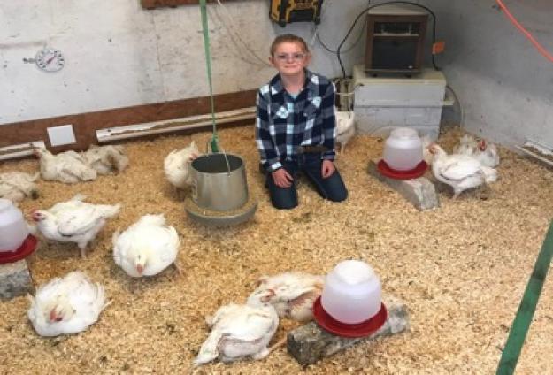 Grade 3 - BROILERS - My name is Addison Buckland. I am in third grade at Roland Reynold Elementary School in Franklin Texas.I love animals! Through this project I learned all about feeding and caring for broilers. There is a lot more than just feeding and watering broilers. The temperature has to be just right at different stages of their life. They eat a lot so I had to put out clean shavings a lot. 4-H has taught me to be responsible and hard work. I plan to put the money from the sale of my broilers into my college fund.