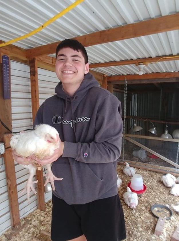 Grade 9 - BROILERS - My name is Cody Conner. Over the past three years of showing broilers at the fair I have learned many things about how to take care of something that needs constant care. With chickens you have a short amount of time to get these animals as big as possible so you must make sure they are properly fed and watered. My first year of showing broilers most of them ended up dying due to poor temperature control and I couldn’t show that year. After that I was determined to learn more about proper broiler care. I have come to understand that broilers need a constant supply of fresh air fresh food fresh water and fresh shavings. I have been fortunate enough to make the sale ever since then. Showing animals at the county level has helped me be a more responsible person. I enjoy showing animals and will continue to show for years to come.