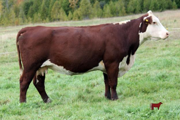This Online 122L cow has so much femininity. She has a very youthful udder with a real balanced frame and is a great mother. Bred to: TH 122 71I Victor 719t on Apr 6. Preg checked safe. Pasture exposed to NBG 69T The Wonderer 36R ET 3W.