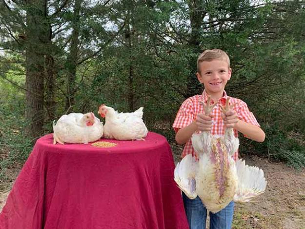 "Grade 3 - BROILERS - Hi my name is Jakob Keller and this year I am in third grade. This is my first year showing and I raised chickens. I learned how to fill the waterers with fresh water and flip them over without spilling it. I also learned how to feed them. At first it was easy but then it started to get hard. It got hard because they grow really fast so they want to eat more and drink more. I was working a lot. It was more work than I thought it would be.I had my older sister helping me since she is experienced with raising chickens for fair. At first I didn't want to listen to her but then I learned that she could help me if I listened to her. I told her ""Thank you for helping me learn."""