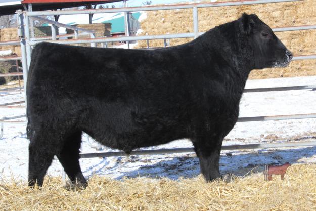 BW: 62 205 adj: 655 Kath and Cliff Folk purchased this bull's dam from Desmond Rasmusson at the Gateway Sale. She is a deep bodied, quiet female who produced this stout pair of twin bulls. 16A was later fostered onto another cow for the summer. 16A is a shorter framed bull with a very broad top. He is a bull that I like more and more as he matures.