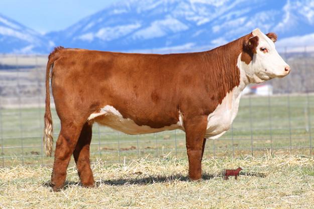 Polled Bred to Churchill Outlaw 4334B ET Due: 10/15/17 A beautiful Perfect Timing heifer that is moderate, very eye appealing, with great color and pigment! She will have an awesome udder! Her dam is a power donor for us and Loehr Hereford Farm. Top 10% for YW, Uddr, Teat, CW, and REA!