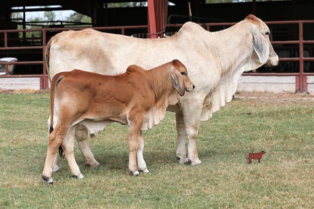 JDH Lady Bray Manso is a regular calving daughter of the National Champion and breed icon +JDH Mr. Elmo Manso. This female is extremely gentle, moderate framed, red tinged, deep ribbed, and long made. Study the bull calf on the side of Lady Bray that was born 7/14/2022 by Mr. V8 733/7 “Polled Phenom” #934072. It should be noted that the bull calf at side is double bred +JDH Elmo Manso which has proven to be a good cross already producing a show heifer turned donor for ERB Cattle Co. JDH Lady Bray Manso was exposed 8/4/2022-9/12/2022 to LMC LN Polled Pappo 136/6 #953236.