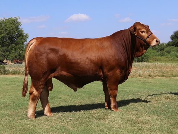 This calf reminds us of LM Full House (his Maternal & Paternal great grand sire) which was one of the greatest Ambassadors Simbrah ever had. We are impressed with his correctness, muscle shape, length & strength of spine, bone, clean sheath, breed character and eye appeal. He is THE COWMAN'S KIND that will also be a great AMBASSADOR for the breed. We have big plans for this popular champion.