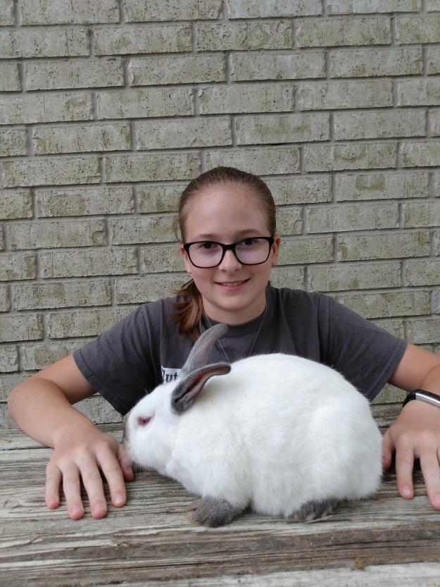Grade 6 - RABBITS - Hi my name is Jamie Lopez. I am raising rabbits for the RCFA fair. This year I have a market pen of Californian meat rabbits. I have learned many things including hard work responsibility and showmanship. Having to take care of my breeding stock year around has taught me about hard work. Keeping rabbits alive under the sweltering summer heat is tough as well as keeping the rabbit barn clean. I have learned about responsibility in many way one way is by getting up early every morning to feed animals. Even though I have a busy schedule with school and sports I find time to work with my rabbits. I feed them twice a day and water daily. I check them for a number of health problems on a regular basis as well.