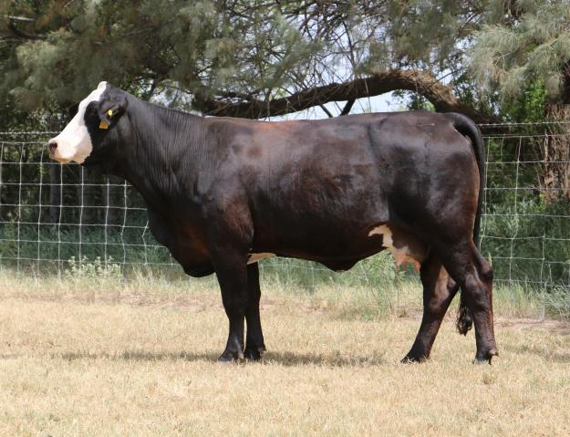 Jennie Mae is a gorgeous black baldy cow that will add length of body, eye appeal and a good udder to your program. For as feminine as she is she has plenty of thickness, is wide based and travels with ease. She has a gorgeous front end and has been a good donor for us. I have always liked her dam and Jennie Mae gave us the opportunity to add that great female’s influence to our elite herd. This former show heifer has a good disposition and her whole life ahead of her as she is not even 4 yet. We have meticulously put together a herd of only the finest bloodlines in Simbrah, stacking up productive bloodlines on top of productive bloodlines in pursuit of producing only the best. We urge you to study our consignments in this sale and go back to see all the big names in these pedigrees as we feel confident you can rely on them as we have for many years.