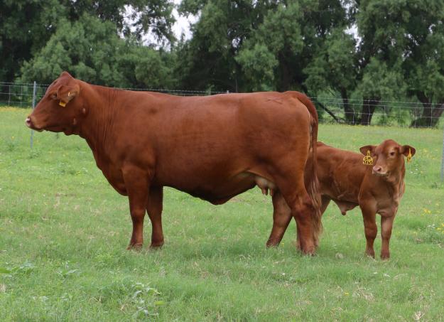She is perfectly healthy and going to make her new owner a great addition. It is always great to own the MAMA to your herd bull especially when she is as good and pretty as this cow is. She sells open with two units of semen from any available LMC sire. Both are solid red and are the RIGHT KIND - THE COWMAN'S KIND.
