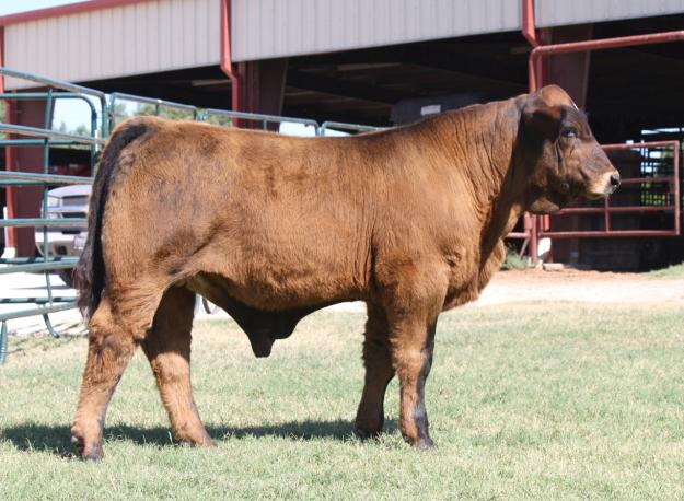 Flo Daddy is gentle, good haired and unique in his type and kind. He has a striking profile and has enough natural width, which makes him a complete individual. This is as good a bull calf as we have ever raised and he should make a tremendous herd bull or show steer. His dam is the type of cow you want your herd bull out of and his sire is being used on a clubby set of cows to produce steers that can compete at the highest level. Flo Daddy is rich in breed character, has plenty of rib and is sound. Once the sale closes, you will be proud to own this promising bull calf. If developed as a herd bull, we are going to reserve the right to collect 300 units for in herd use only.