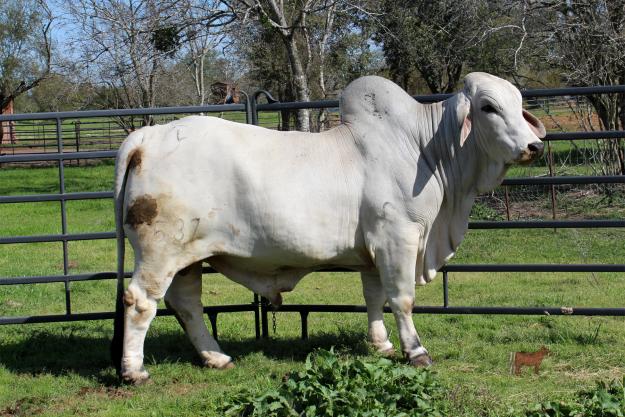 This is a J. D. Hudgins bred bull. He has been used as a herd bull for two years. He is producing heavily muscled calves with a lot of bone and eye appeal. His pedigree goes back to Register of Renown Bull +Mr. V8 189/4. of which he shows a tremendous similarity. This bull is calm and tame. Consider this bull if you need to add some beef breed characteristics to your herd with a big impressive herd sire.