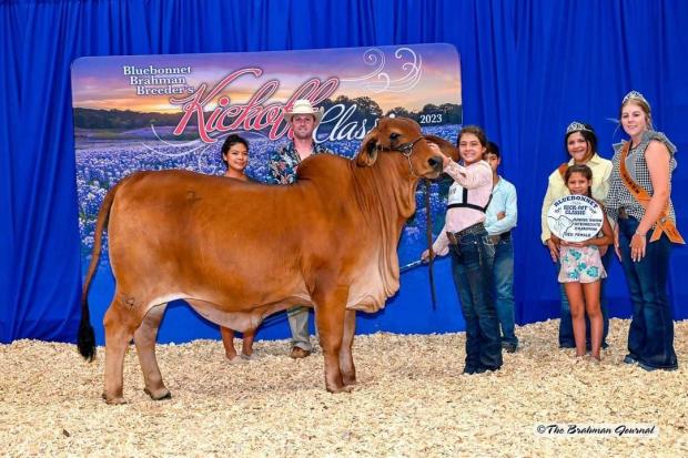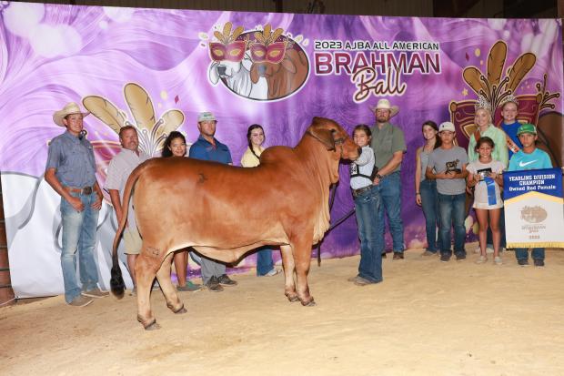 Already crowned as the 2023 Fort Worth Stock Show & Rodeo Reserve Grand Champion Red Female, as a calf; Yearling Division Champion at the All American, and Reserve Grand Champion at the Bluebonnett Kickoff Junior Show… She very well may be the best show/donor prospect we’ve raised. Her mother included in that statement. If you’ve seen 541 in person, you know she’s not just a pretty profile but comes with as much middle and capacity as you can put in one….. yet maintains a very elegant and feminine front 1/3rd. Some may even call it “freakish”