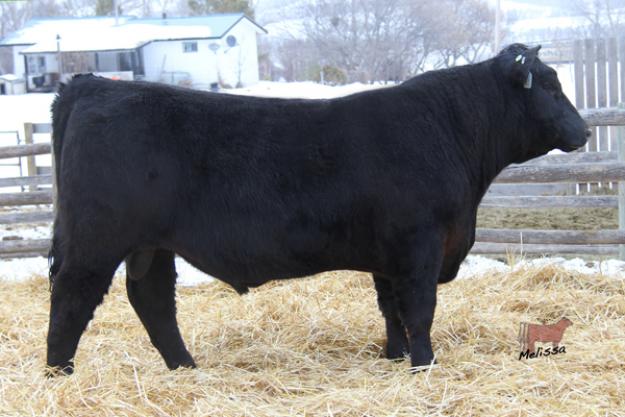 Very long bodied bull out of a 1st calf heifer. Extra performance. Mature cows or larger volumned heifers. Red Dam - Black RC Sire.