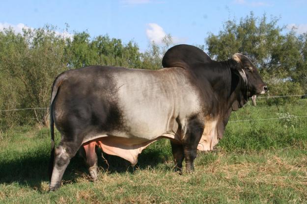 LMC WFF Pistolero is one of the beefiest, heaviest muscled, longest, deepest and biggest boned POLLED bulls in the breed. He is rich in pigment and breed character. He has produced lots of good sons and daughters that are working all over the Brahman World. Three of our best herd bulls are Pistolero sons - LMC Polled Aussie, LMC Apollo and LMC Polled Sambo. Several of our top young donors are Pistolero daughters.