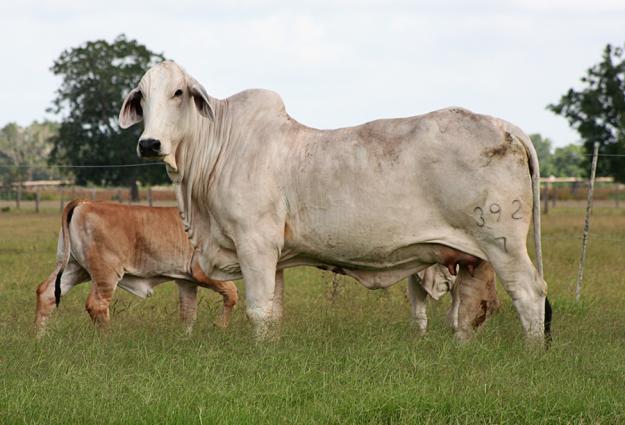 A young four year old female that is a full sister to the #1 yearling weight bull and #2 weaning weight bull in the breed, Mr. V8 442/6. This female has an ideal udder and is an excellent milker. She is a +JDH Karu Manso 800 daughter out of Miss V8 208/6, who is a full sister to one of our great donors and former World Brahman Congress Champion +Miss V8 464/6. The maternal grandam, +Miss V8 188/5, has produced as many Houston champions as any cow in the breed. Miss V8 392/7 features 9 Register of Renown ancestors and 4 donors for V8 Ranch. She also has 3 bulls that were Houston champions in her pedigree.