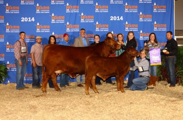 She has been Grand Champion at the 2012 State Fair of Texas open/junior/bred and owned, 2012 HOT open/junior and Reserve Supreme Grand Champion heifer. 2013 Ft Worth junior bred and owned, 2013 San Antonio $10K scholarship winner, 2014 San Angelo junior, and 2014 Houston Livestock show open/junior.