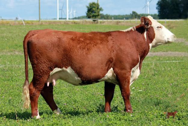 Moderatley framed 2 year old sweet heart with loads of milk. Great 719T heifer calf at side which we are retaining. Sells bred to RVP 100W Bentley 12B, to be born early Jan 2016. Vet checked safe Aug 17 2015. Really sorry to see this girl go!