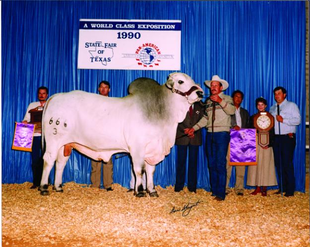 The phenomenal 1990 National Champion bull who is a direct son of the #1 Register of Renown cow, +Miss V8 617/2, mated to the breed's winningest sire, Vanguard bull, and 3 time National Champion (+)Mr. V8 202/3.