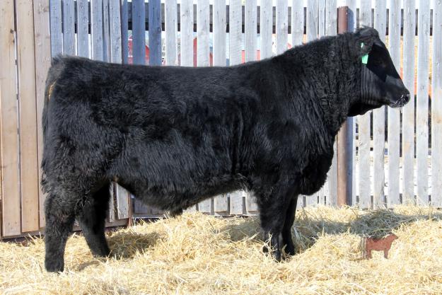 BW: 82 205 adj: 734 WW ratio 112 rank 2/26 Gestatation 274 days - A larger framed bull with a moderate 82 lb start to life and was the heaviest at 1220 lbs Feb.17/14. At ten years of age this bull's dam seems to produce stronger every year. She bred back quickly and has another strong bull calf at side.