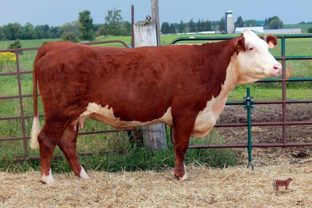 This 2 year old cow is a powerhouse. Clean fronted and broody looking. Her 29F dam is a no miss cow that weans one of the heaviest calves each year. 3A followed in her mother's footsteps this year by raising a heavy steer calf. Her udder quality is ideal with lots of milk and small teat size. Added performance is also provided by in her sires pedigree. Bred June 17 to Misty-River Protocol 21W. Safe in calf to this service.