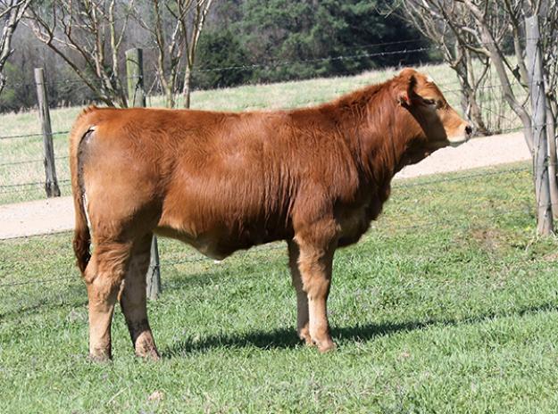 Melinda is one of the most balanced heifers in the sale, that puts together a lot of positive traits. She is wide based, correct and walks away with cushion on her feet and legs. Her sire, 6G/LMC Rajin Cajun is known for siring cattle with a unique look with plenty of natural product in an ideal frame score. Melinda has the unique look, excels in natural muscle and is ideal in her frame. We look for Melinda to be a success in and out of the ring.