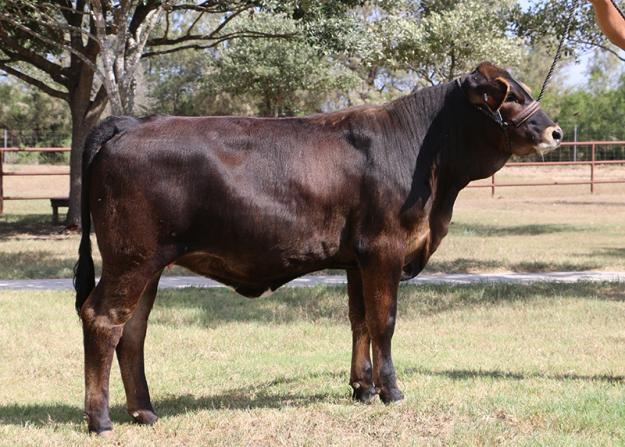 LMC Amanda A143 is a soggy, big boned, dark hided and dark pigmented multi-generation Simbravieh female that can show and win your child a TCCA jacket fairly easy due to the small numbers showing Simbraviehs as the breed is in it's infancy. Simbravieh may be the best kept secret in the cattle business. They are docile, moderate, easy keeping, heavy milkers, feed efficient, heat resistant cattle with good carcass merit and a world of potential.