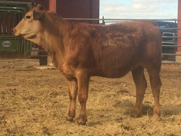 B136 is out of a young bull we purchased from Pine Ridge Ranch. She is polled, extremely long bodied and very level made. I really like the extension she has through her front end. She would make a great cow in any herd. Her dam has some awesome beef bulls in her pedigree in Manhattan, Nichols Legacy and Bravo.