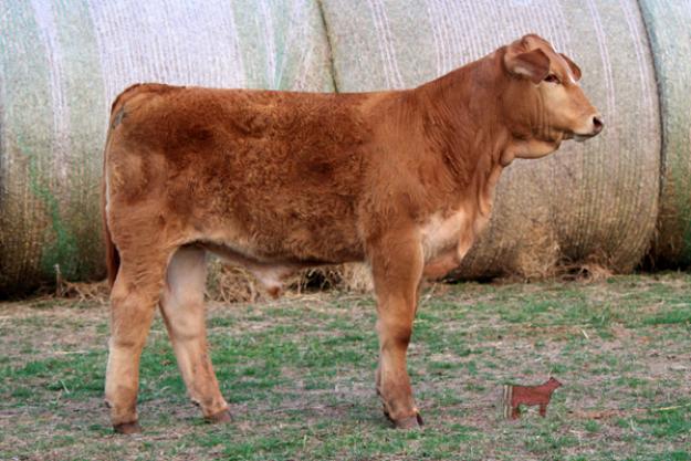 Purebred simbrah sired by the full brother to a Houston International Champion bull (BCC Majestic) and out of a 55K daughter. Last year's full sibling was a heifer that won quite a bit in the Simbrah arena. She was moderate framed, cool fronted, and had lots of rib and body. We expect Tag 27 to pack lots of muscle onto his heavy structured, super long frame. When he gets his head up, he has the same clean, extended front as his sister.