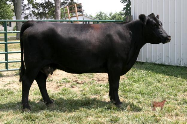 This cow is one of the most attractive cows in the Miller herd. Her daughter was named the Intermediate Champion Bred & Owned Female at the 2009 Indiana Junior Angus Preview Show and a grandson, LMF Radar 1710, was named Senior Bull Calf Champion at the 2011 Indiana Angus Preview Open Show and the 2011 Ohio State Fair. She sells bred to calve April 5, 2012, carrying a 3/4 sibling to LMF Radar 1710, sired by BC 7022 Raven 7965.