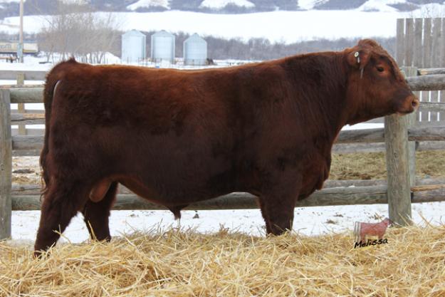 Dark red bull with lots of middle, good for cows or heifers.