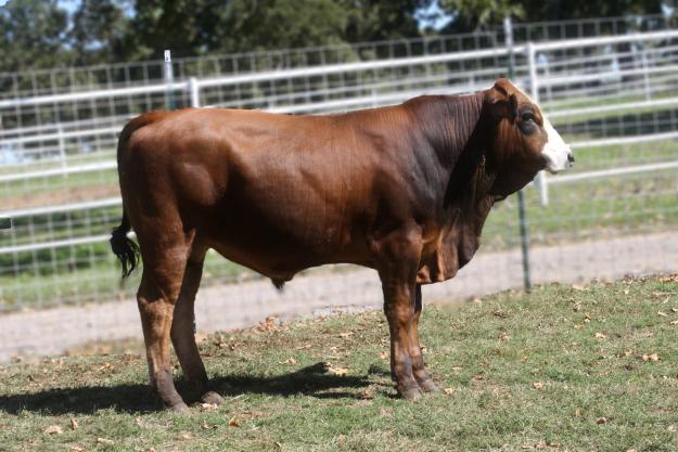 Pretty Boy, one of the 4 Solitaire sons in this sale, is the finesse bull of the group. He is a finer boned bull with a lot of style. He is color correct with good depth of rib and a smooth top line. He should produce some really nice daughters. For more information contact Kenneth Airheart 903-539-1666.